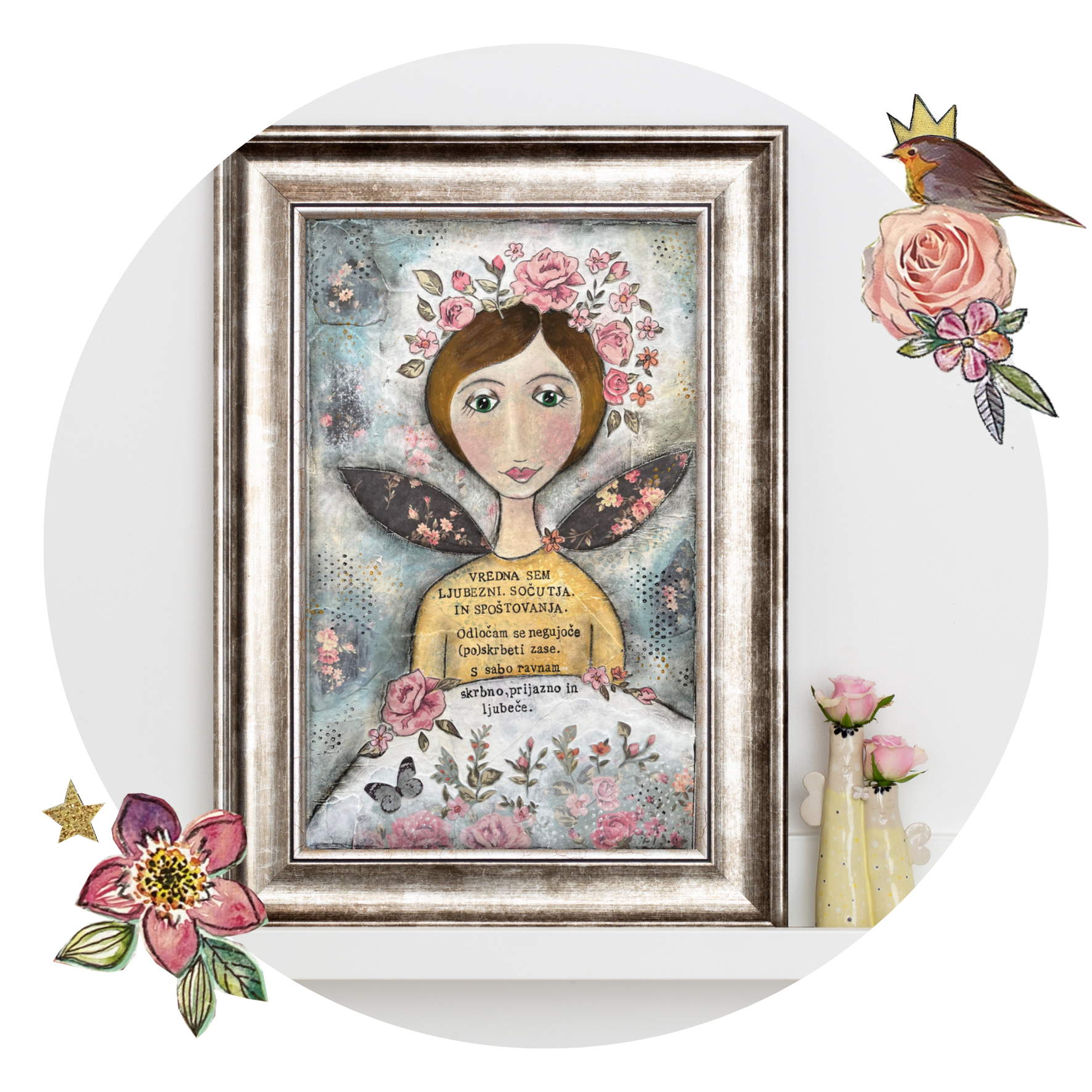 They embrace, caress, support, inspire and smile at the wounded inner girl in me, so that she can reach out her hand to the grown-up, mature woman and together we can step into the world as an unbreakable whole, empowered.”