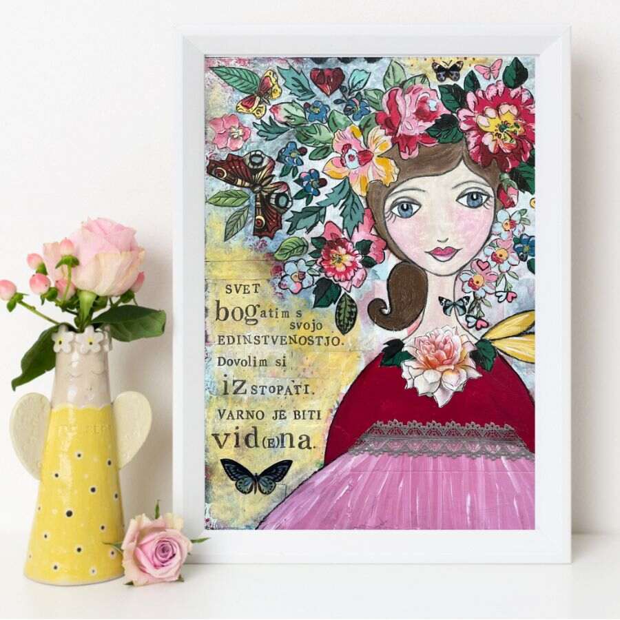We all have a need to be seen and lovingly embraced in our uniqueness. This angel serves as a gentle reminder that it is safe to stand out and be seen. But first, we have acknowledge and embrace ourselves and our beautiful uniqueness. We have to accept the gift that we are. That enriches the world. And makes it more loving, exuberant and beautiful.
