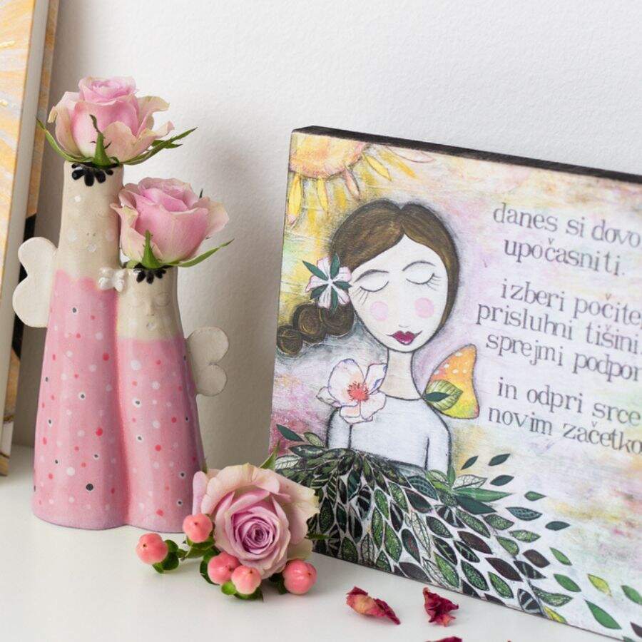 Your favorite angel is printed on wood, creating a warm and natural look. Because the wood is light and pleasant to the touch, the piece doesn’t weigh down the space – instead, it gently enriches it and adds a nurturing sense of homeliness.